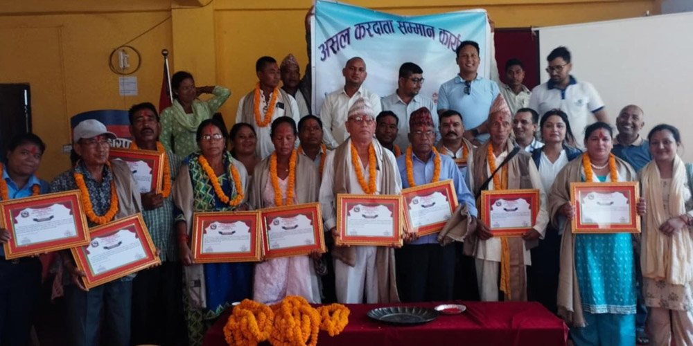 धनगढी । कैलालीको टीकापुर नगरपालिकाले असल करदातालाई सम्मान गरेको छ । नगर प्रमुख रामलाल डगौरा थारुले समयमै नियमित कर बुझाउने नौवटै वडाका एक संस्था र २४ जनालाई सम्मान गर्नुभएको हो ।