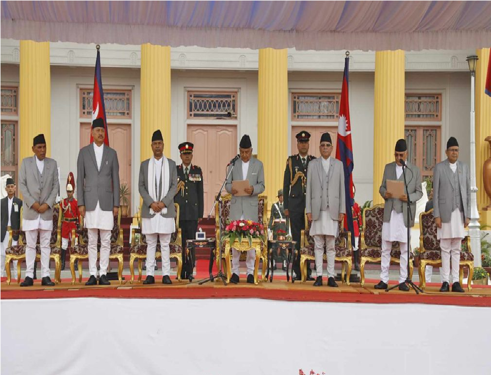 धनगढी :नवनियुक्त प्रधानमन्त्री केपी शर्मा ओलीले पद तथा गोपनीयताको शपथ लिएका छन् । राष्ट्रपति कार्यालय शीतल निवासमा प्रधानमन्त्री ओलीले शपथ लिएका हुन् । उनलाई राष्ट्रपति रामचन्द्र पौडेलले शपथ खुवाए । प्रधानमन्त्रीमा दाबी पेस गर्ने समय सकिएपछि आइतबार बेलुकी ५ बजेपछि राष्ट्रपति पौडेलले ओलीलाई प्रधानमन्त्री नियुक्त गरेका थिए । ओली संविधानको धारा ७६(२) अनुसार प्रधानमन्त्री नियुक्त भएका हुन् ।