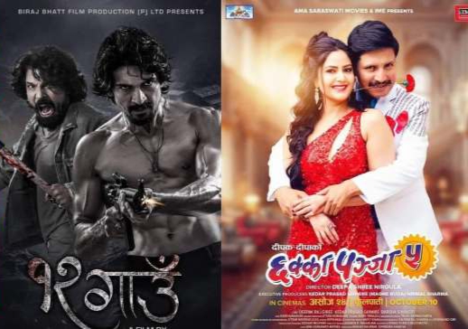 ‘छक्कापञ्जा ५’ दीपकराजको टीमले निर्माण गरेको सातौं चलचित्र हो। अहिलेसम्म निर्माण गरेका सबै चलचित्रमा शत प्रतिशत सफलताको रेकर्ड राख्न यो टीम सफल भएको छ। दशैंमा दर्शक उराल्ने अर्को चलचित्र बन्यो ‘१२ गाउँ’। कुनै समयका एक्सन स्टार विराज भट्टले निर्माण र निर्देशन गरेको यो चलचित्र पनि निरन्तर हाउसफुल छ। दक्षिण भारतीय शैलीको एक्सन चलचित्र मन पराउने दर्शकहरु ‘१२ गाउँ’मा आकर्षित भएका छन्। विराज भट्टका छोरा समीर भट्ट यो चलचित्रका मुख्य आकर्षण हुन्। ‘१२ गाउँ’को व्यापारिक आँकडा निर्माण पक्षले सार्वजनिक गरेको छैन। वितरक गोविन्द शाहीले एकै पटक एक साताको रिपोर्ट सार्वजनिक गरिने बताए। ‘हामीले सबैतिरको रिपोर्ट पाइसकेका छैनौं, तर दर्शकको उपस्थिति एकदमै उत्साहजनक छ’, उनले भने, ‘आज पनि सबै शोहरु हाउसफुल छन्।