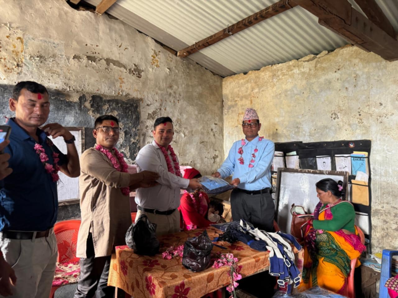 डडेल्धुरा : डडेल्धुराको नवदुर्गा गाउँपालिका वडा नम्बर ४ मा रहेको दुर्गा प्राथमिक विद्यालयका विद्यार्थीहरुलाई विद्यालय पोशाक वितरण गरिएको छ ।