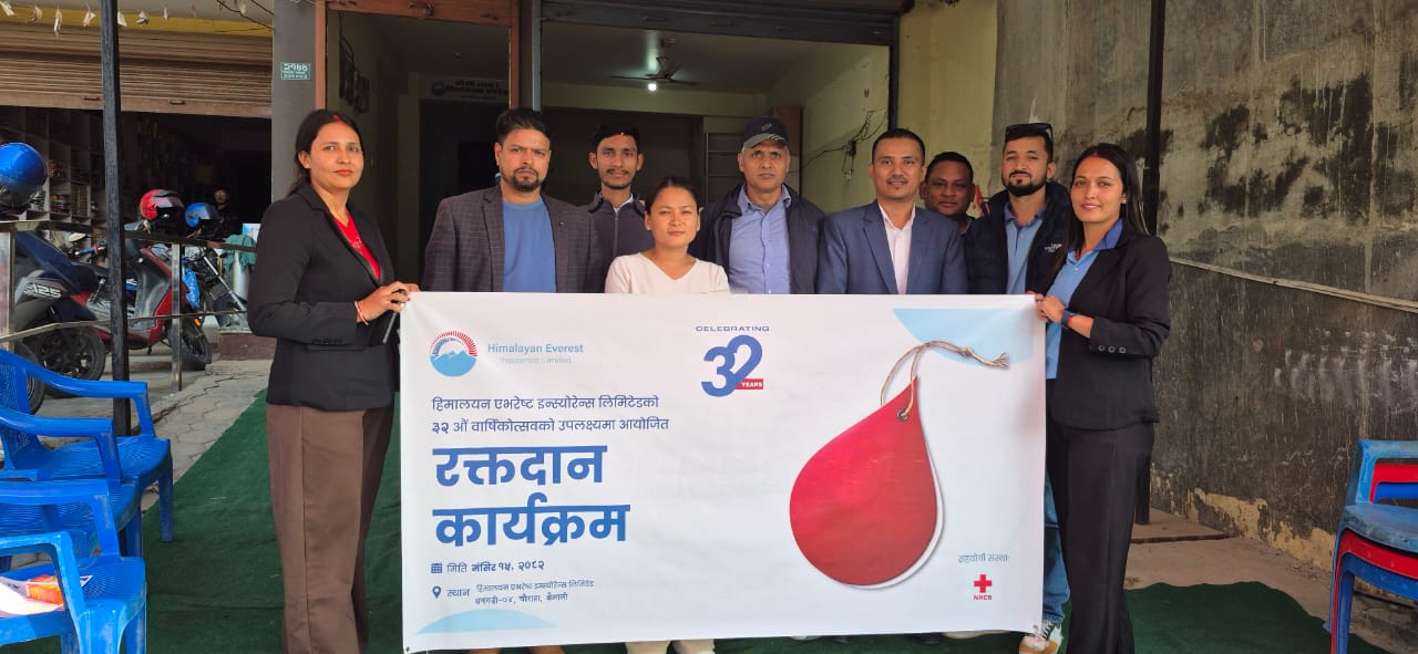 धनगढी । हिमालयन एभरेष्ट इन्स्योरेन्स लिमिटेडको ३२ औँ बार्षिकोत्सवको अवसरमा आज धनगढीमा आयोजित रक्तदान कार्यक्रममा ४० यूनिट रगत संकलन गरिएको छ।