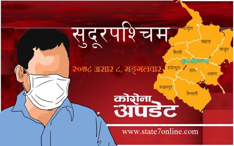 सेती प्रादेशिक अस्पताल प्रयोगशालामा ६३ जनाको नमूना परीक्षण गर्दा २१ जना, महाकाली अस्पतालमा १३ नमुना परीक्षण गर्दा ४ जना, डडेल्धुरा अस्पतालमा ८ जनाको नमूना परीक्षण गर्दा २ जना, डोटीमा अस्पतालमा ११ जनाको नमूना परीक्षण गर्दा ४ जना र बैतडी अस्पतालमा ४६ जनाको नमूना परीक्षण गर्दा २ जनामा संक्रमण पुस्टि भएको स्वास्थ्य निर्देशनालय डोटीले जनाएको छ।