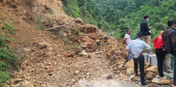 बैतडी। बैतडी–दार्चुला जोड्ने महाकाली राजमार्ग अवरुद्ध भएको छ । राजमार्गको सतबाँझ–गोकुलेश्वर सडक खण्ड अन्तगर्त बैतडीको सुर्नया गाउँपालिका ३ धरमघर भन्ने स्थानमा पहिरो खसेपछि सडक अवरुद्ध भएको हो । केही दिन अघि परेको लगातारको बर्षाका कारण खसेको पहिरो फेरी शुक्रबार बिहान पनि खसेकाले सडक अवरुद्ध भएको जिल्ला प्रहरी कार्यालयका प्रवक्ता प्रहरी निरीक्षक दर्शन खड्काले जानकारी दिए ।
