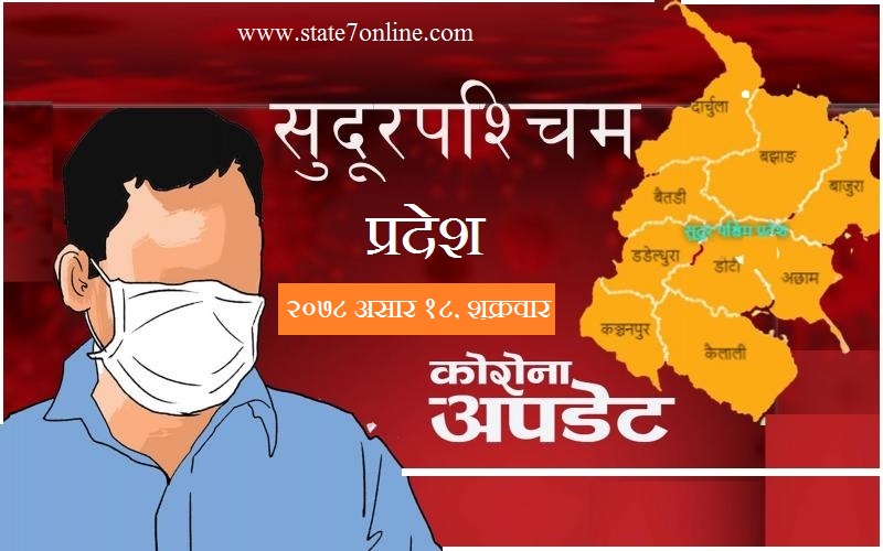 सेती अस्पतालमा १९ जना, डडेल्धुरा अस्पतालमा १ जना, कमलबजार अस्पताल अछाममा ८ जना, महाकाली अस्पतालमा ६ जनामा कोरोना देखिएको स्वास्थ्य निर्देशनालय दिपायल डोटीले जनाएको छ। यस्तै पछिल्लो २४ घण्टामा ३१ जना संक्रमित निको भई घर फर्किएका छन्। सुदूरपश्चिम प्रदेशमा शुक्रबार कोरोना भाइरस संक्रमणका कारण मृत्यु हुनेको संख्या शून्य भएको छ।