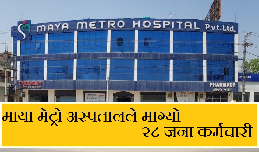 धनगढी। धनगढीमा रहेको माया मेट्रो अस्पतालले ठूलो संख्यामा कर्मचारीको माग गरेको छ। विभिन्न पदका लागि कर्मचारी मागको सूचना जारी गरेको अस्पतालका अध्यक्ष धिरेन्द्र साँउदले बताए। सूचना अनुसार अस्पतालले कार्डियोलोजिस्ट, न्यूरो सर्जन, डर्माटोलोजिस्ट, रेडियोलोजिस्ट, साइक्याक्र्याटिक्स्, फिजियोथेलापिस्ट, रेडियो टेक्नोलोजिस्ट, मेट्रोन, फार्मासिस्ट लगायतमा १,१ जना मागिएको छ। यस्तै स्टाफ नर्स १० जना, असिस्टेन्ट फार्मासिस्ट ४ जना, मार्केटिङ अफिसर २ जना, अस्पताल प्रशासनमा १ जना गरी कूल २८ जनाका लागि आवेदन माग गरिएको छ। योग्यता पुगेका तथा इच्छुक व्यक्तिले अस्पतालमा सम्पर्क गर्न सकिने बताइएको छ।