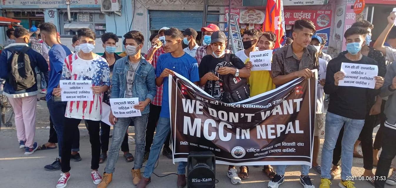 उनीहरुले चर्को नारा सहित एमसीसी सम्झौता खारेज गरौँ, राष्ट्रिय स्वाधिनताको रक्षा गरौँ, राष्ट्घाती एम सि सि चाहिदैन, देश बेच्न पाइदैन । नेपाललाई उपनिबेश बनाउन पाइदैन। राष्ट्रिय दलाल होशियार भन्दै नारालगाउदै धनगढीको मुख्य मन्त्री कार्यालय देखी पार्कमोडसम्म बिरोध र्याली निकालेका थिए । नेपाली झण्डा बोकेर आएका उनीहरुले भारतीय ज्यादती विरुद्ध समेत नारा बाजी गरेका थिए । बिरोध प्रदर्शन कार्यक्रममा विद्यार्थी संगठनको उपस्थिति रहेको थियो । साथै संगठनले विद्यार्थीको हकहित र आगामी दिनमा विभिन्न कार्यक्रमहरू आयोजना गर्ने जनाएको छ ।