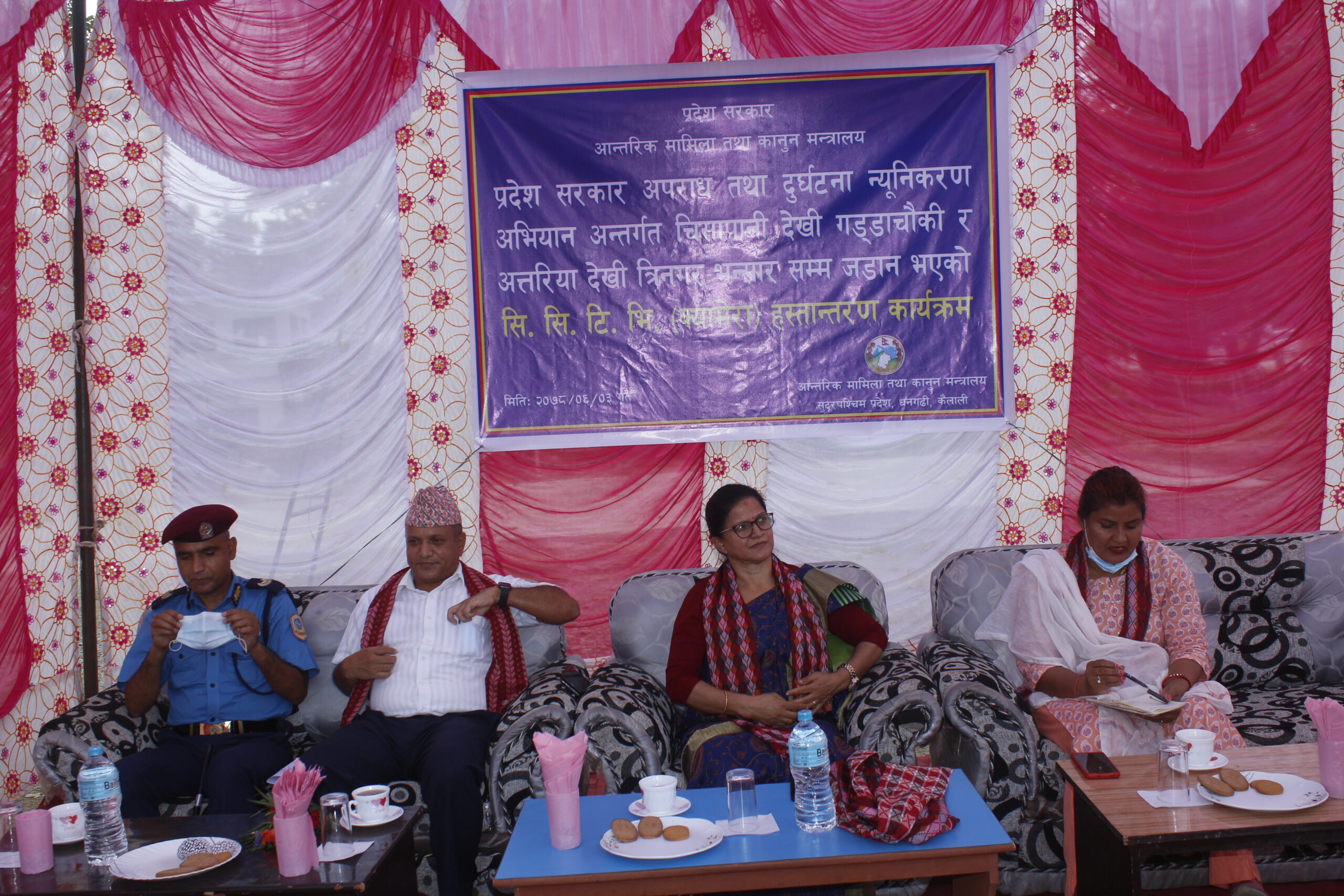 कैलालीको पूर्वी क्षेत्र चिसापानीदेखि पूर्व–पश्चिम राजमार्गअन्तर्गत कञ्चनपुरको गड्डाचौकी नाकासम्म र कैलालीको अत्तरिया बजारदेखि मोहन अत्तरिया छ लेन सडकअन्तर्गत त्रिनगर नाकासम्म १३८ स्थानमा सीसी क्यामेरा जडान गरिएको हो । आन्तरिक मामिला तथा कानून मन्त्रालयले ईलाका प्रहरी कार्यालय अत्तरियामा एक कार्यक्रमको आयोजना गर्दै सीसी क्यामेरा प्रहरीलाई हस्तान्तरण गरेको हो । आन्तरिक मामिला तथा कानुन मन्त्री पुर्णा जोशीले क्यामेराको सुभारम्भ गर्दै प्रहरीलाई हस्तान्तरण गरेकी हुन् ।