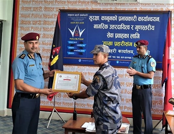 सशस्त्र प्रहरी बल नेपाल नं.७ बाहिनी मुख्यालय, अत्तरिया, कैलालीमा कार्यरत सशस्त्र प्रहरी सहायक निरीक्षक वीरेन्द्र कार्की, जवानद्वय हरिश भट्ट र तिलक लामालाई सम्मान गरिएको हो । शनिवार जिल्ला प्रहरी कार्यालयमा एक कार्यक्रमको आयोजना गर्दै तीनै जनालाई प्रहरी उपरीक्षक विश्व अधिकारीले सम्मान स्वरूप प्रशंसा–पत्र प्रदान गरेका हुन।