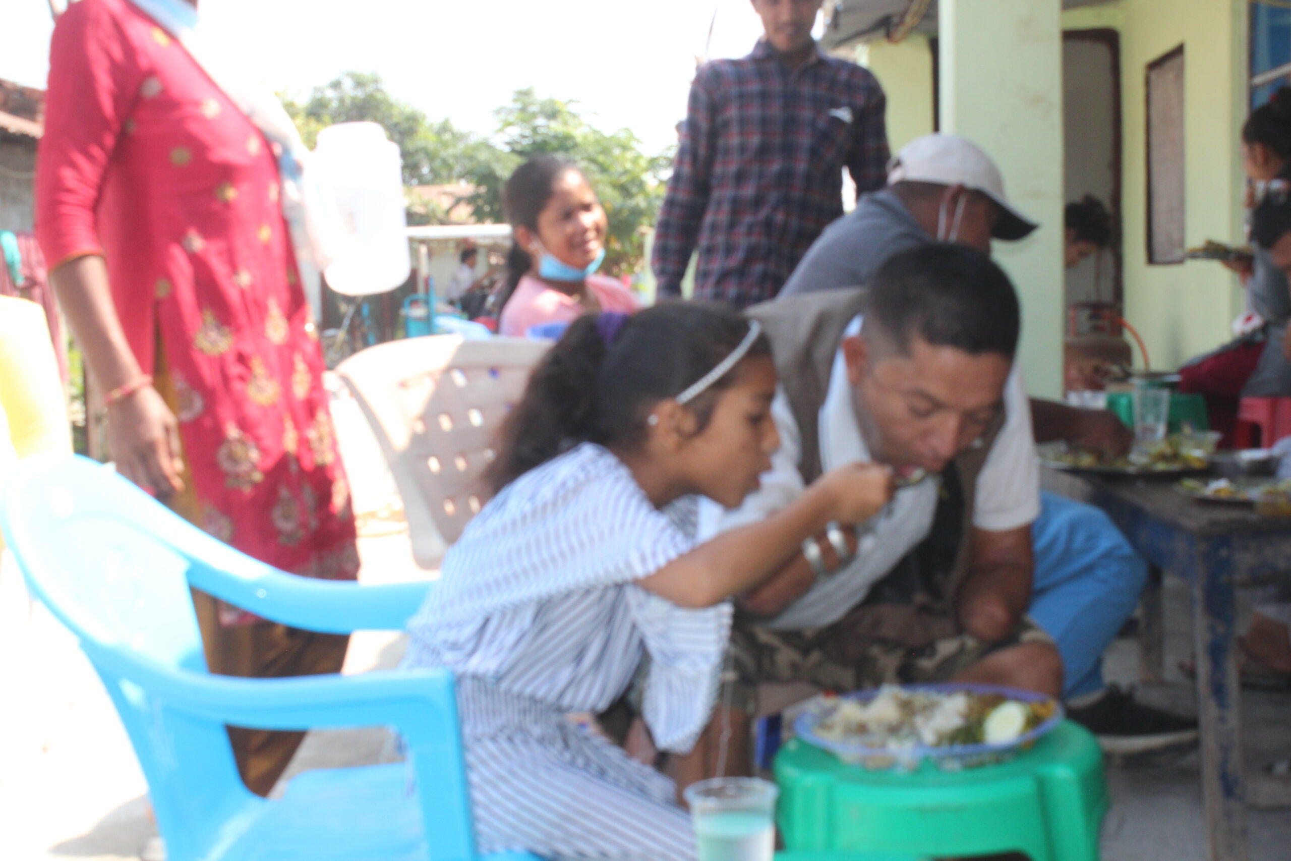 सधैँको दशैँमा अपागंता भएका ब्यक्तीहरुलाई खाना खुवाउँदै उहाँहरुसंगै दशैँ मनाउने ऐरले यस बर्षपनि उनिहरुसंगै दशैँ मनाएका हुन् । अपागंता भएका ब्यक्तीहरुलाई दशैँका बेला माशु भात खुवाउने योजना बनाएर आज खुवाएको अध्यक्ष ऐरले बताए । सामान्य खर्चमा उहाँहरुलाई खाना खुवाएको उनले बताए । धनगढी ३ का करिब २० जना अपागंता भएका ब्यक्तीहरुलाई उनले खाना खुवाएका हुन् ।