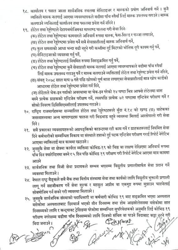 भौतिक उपस्थितिमा पठनपाठन नगराउने र पूर्वनिर्धारित सेमेष्टर तथा वार्षिक परीक्षाको हकमा स्वास्थ्यका मापदण्ड अपनाएर व्यवस्थापन गर्ने निर्णय पनि भएको छ। सार्वजनिक सवारी साधानमा सिट क्षमताभन्दा बढी यात्रु नराख्न, मास्क नलगाएका यात्रु नचढाउन र सबै प्रकारका मापदण्डको प्रयोग गर्नसमेत आह्वान गरिएको छ।(यस्तो छ डिसीसीएमसीको निर्णय)