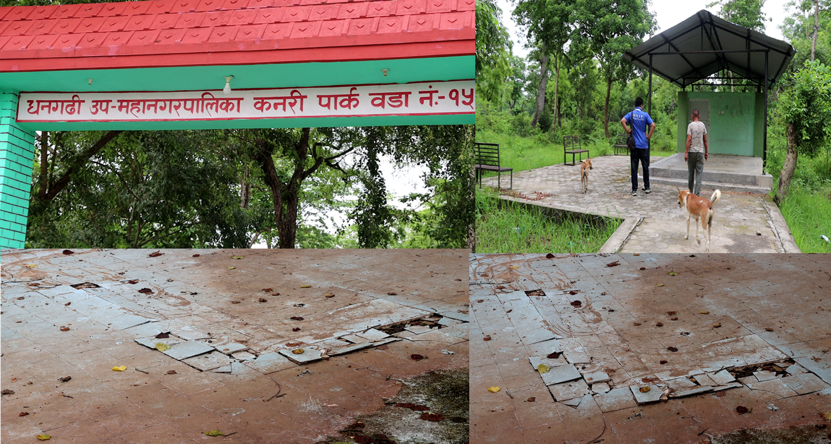 हरिश भट्ट, धनगढी : संघीय सरकारको पौने तीन करोडको लगानीमा निर्माण भएको धनगढीको कनरी पार्क अलपत्र परेको छ । धनगढी उप–महानगरपालिका वडा नम्बर १५ मा कनरी पार्क निर्माण सम्पन्न भई उद्घाटन भएको करिब २ बर्ष पुग्नै लाग्दासम्म पार्क सञ्चालन बारे कुनै योजना बन्न सकेको छैन । झन पार्कभित्र बनाइएका संरचना टुट फुट भई काम नलाग्ने अवस्थामा पुगेका छन् । पार्क उद्घाटन अघीनै संरचना टुटफुट भएपनि उप महानगरले संरक्षणमा चासो नदिदा भएका संरचना समेत भत्किन लागेका छन् ।