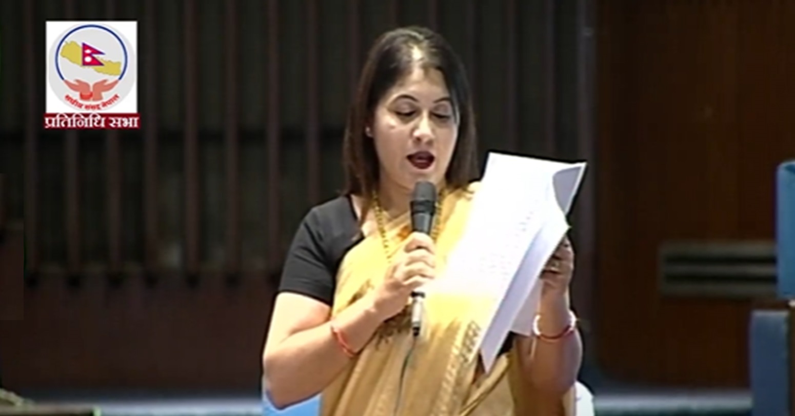 काठमाडौं। जनता समाजवादी पार्टी सांसद नरमाया(प्रज्ञा) ढकालले जेलमा रहेका नागरिक उन्मुक्ति पार्टीका अध्यक्ष रेशम चौधरीको रिहाइ माग गरेकी छन् । शुक्रबारको प्रतिनिधि सभा बैठकमा उनले जनताको भारी मतले चुनिएर पनि राजनैतिक मुद्दामा फसाइएकाले संसद्को कार्यकाल सकिन लाग्दासमेत आफ्नो आवाज राख्न नपाएको बताइन् ।