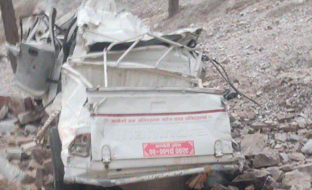 काठमाडौं। जाजरकोटमा जीप दुर्घटना हुँदा ११ जनाको मृत्यु भएको छ। जाजरकोटको छेडागाड नगरपालिका ४ को भिरपाटीमा जीप दुर्घटनामा परेको हो । जाजरकोटको छेडागाड नगरपालिका वडा नम्बर ४ र ५ को बीचमा पर्ने भीरबाटी भन्ने ठाउँमा जिप दुर्घटना हुँदा ११ जनाको मृत्यु भएको हो भने १ जना घाइते भएका हुन्।