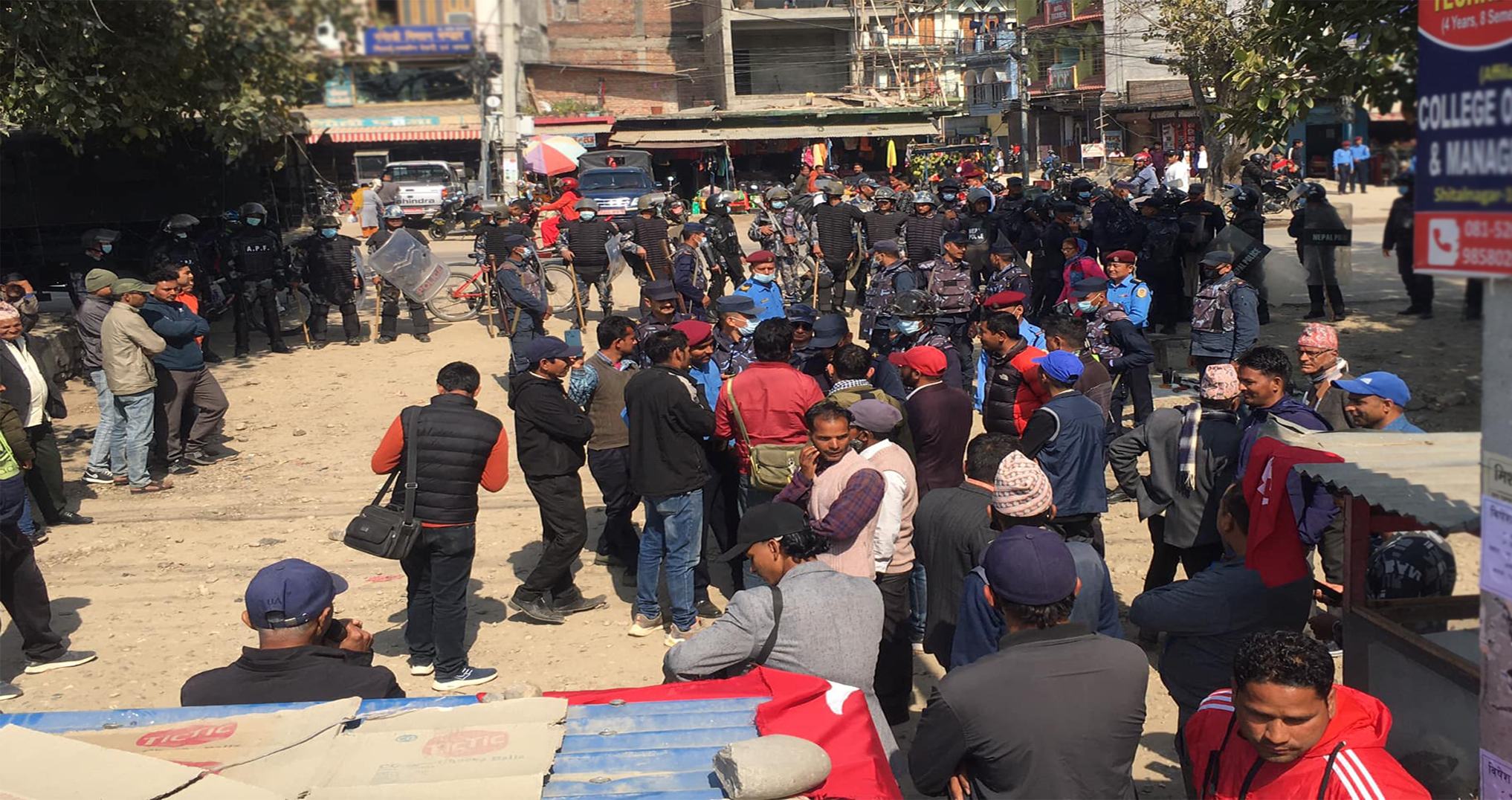 उनले कार्यक्रम सकेर अबिर लगाइरहेका बेला प्रहरीले धरपकड गरेको बताए। प्रहरीले समातेपछि उनीहरुले ‘वीर सहिदहरु लाल सलाम, प्रहरी हस्तक्षेप बन्द’ भन्दै प्रधानमन्त्री दाहालको विरोधमा नारा लगाएका छन्।प्रधानमन्त्री दाहाल बसपार्कको बाटो भएर दोधारा चाँदनी सुख्खा बन्दरगाहको निरीक्षणका लागि गएका छन्। उनी यस पछि बसपार्क नजिकै रहेको खुलामञ्चमा हुने १४ औँ सुदूरपश्चिम प्रदेश स्तरीय औद्योगिक व्यापार मेला तथा कञ्चनपुर पर्यटन महोत्सवको उद्घाटन गर्ने कार्यक्रम रहेको छ। दोधारा चाँदनीबाट प्रधानमन्त्री दाहाल सोही रुट भएर फर्किने छन्।