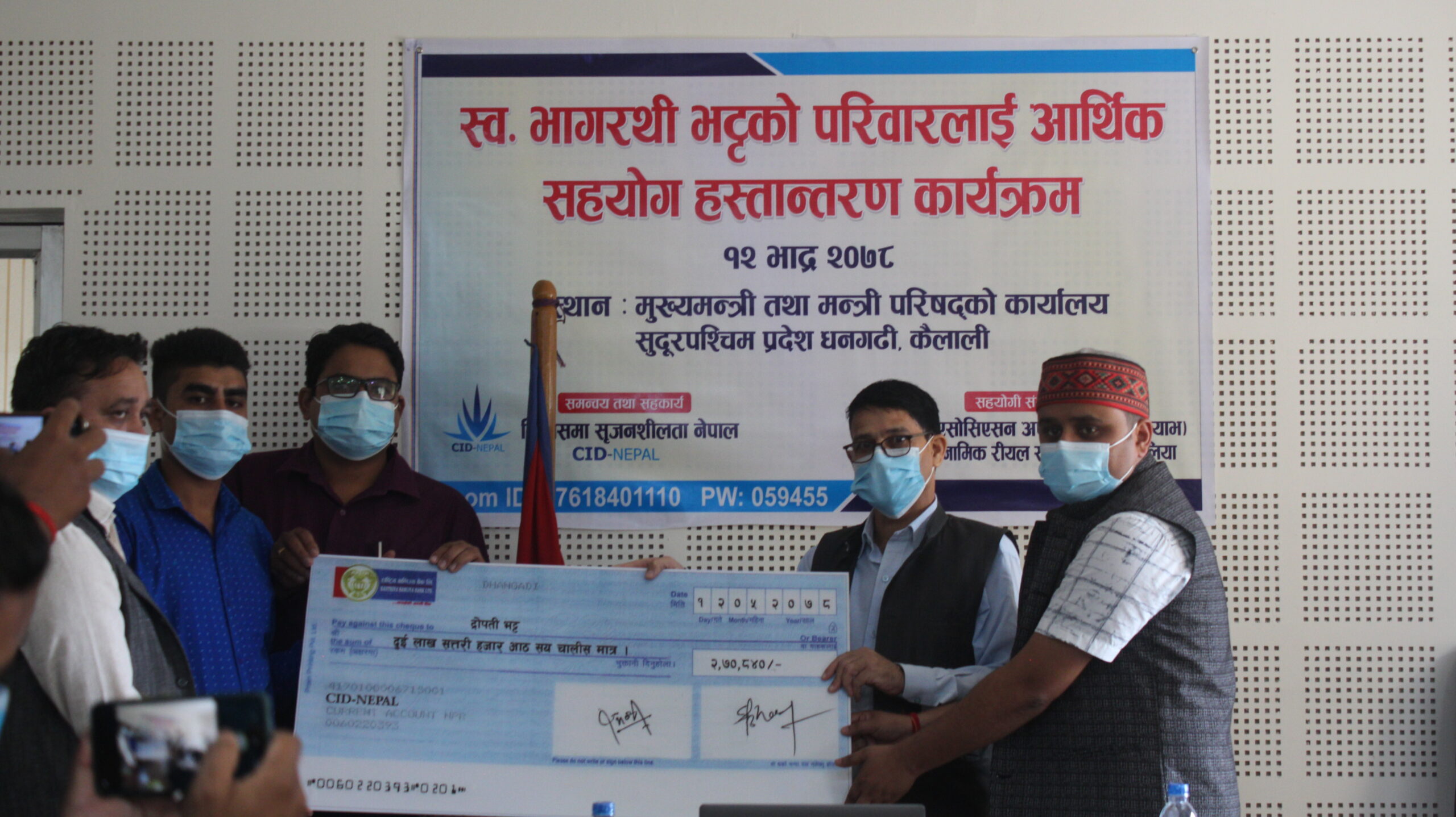भागरथी भट्टका परिवारलाई आर्थिक सहयोग