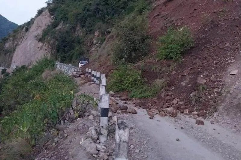 बैतडीको श्रीभावरमा परेको पहिरोका कारण राजमार्ग अवरुद्ध