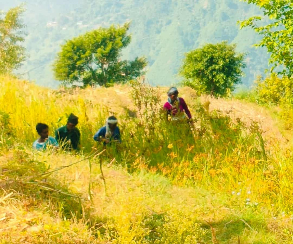 दसैँको उमङ्ग छैन गाउँमा : किसानलाई बाली भित्र्याउने चटारो