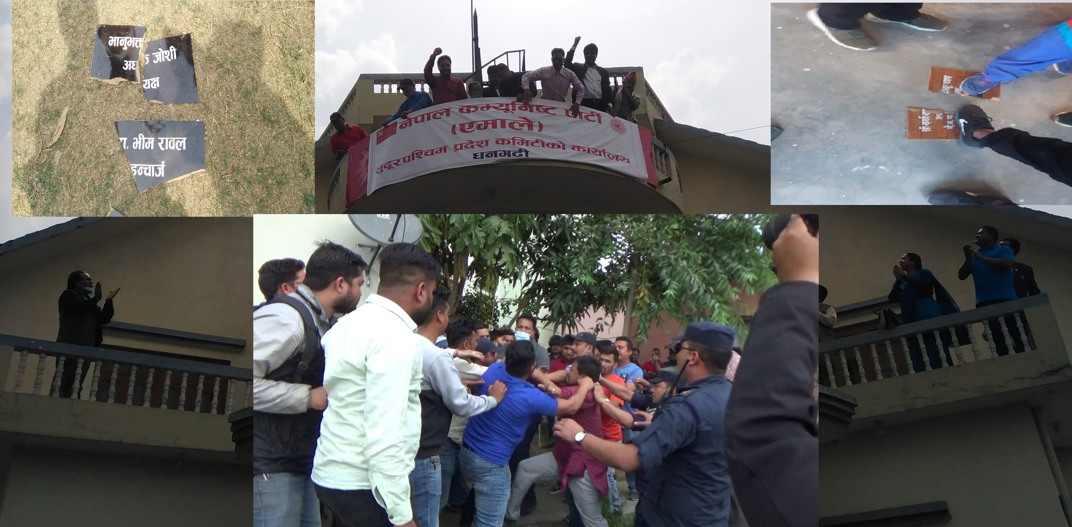 सुदूरपश्चिममा एमाले बिवाद, दुवै पक्षले फाले एक अर्काको नेम प्लेट, ढुगां हानाहान र गाली गलौच, लेखराज भट्ट बन्लान त ईन्चार्ज ?