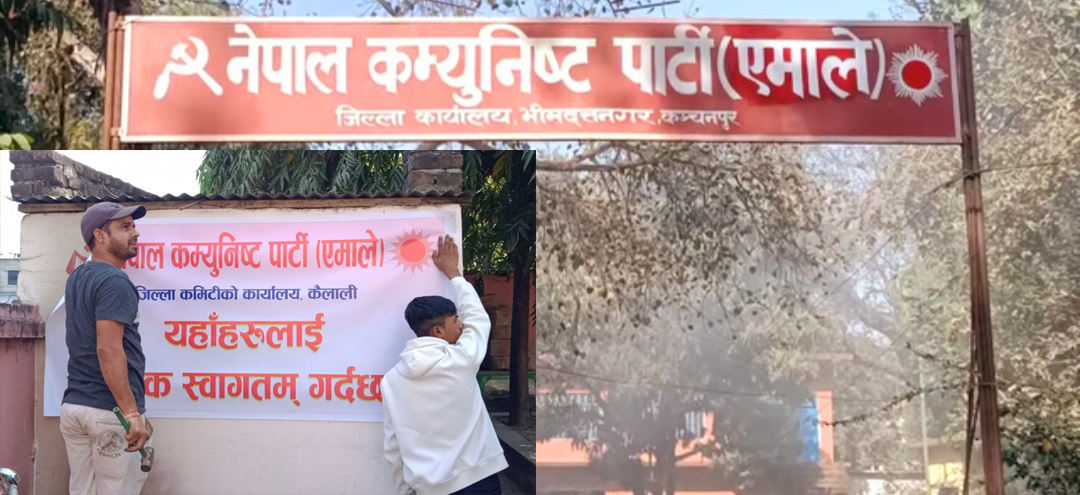 कैलाली र कञ्चनपुरमा पनि नेकपाको पार्टी कार्यालयमा एमालेको ब्यानर टाँगियो