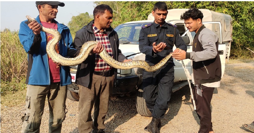 कञ्चनपुरको बेलौरीबाट दुर्लभ अजिङ्गरको उद्दार