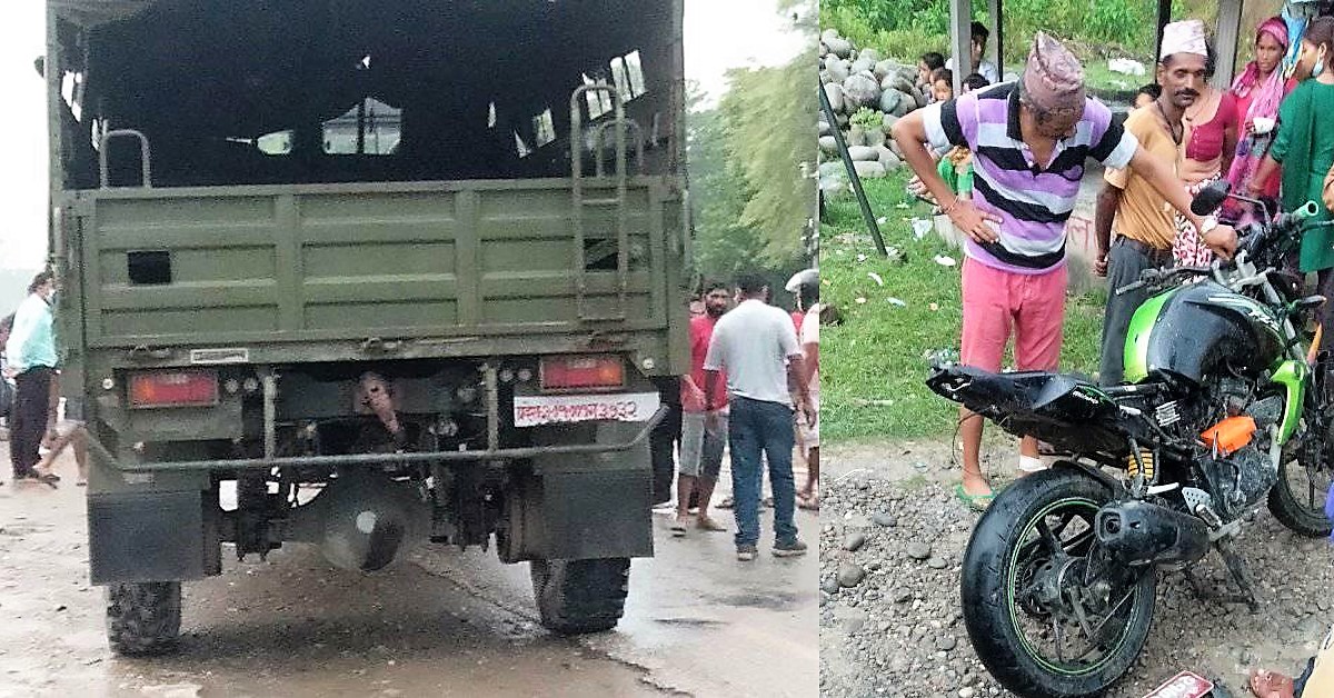 कैलालीमा सेनाको गाडीले मोटरसाइकललाई ठक्कर दिँदा ३ जना घाइते