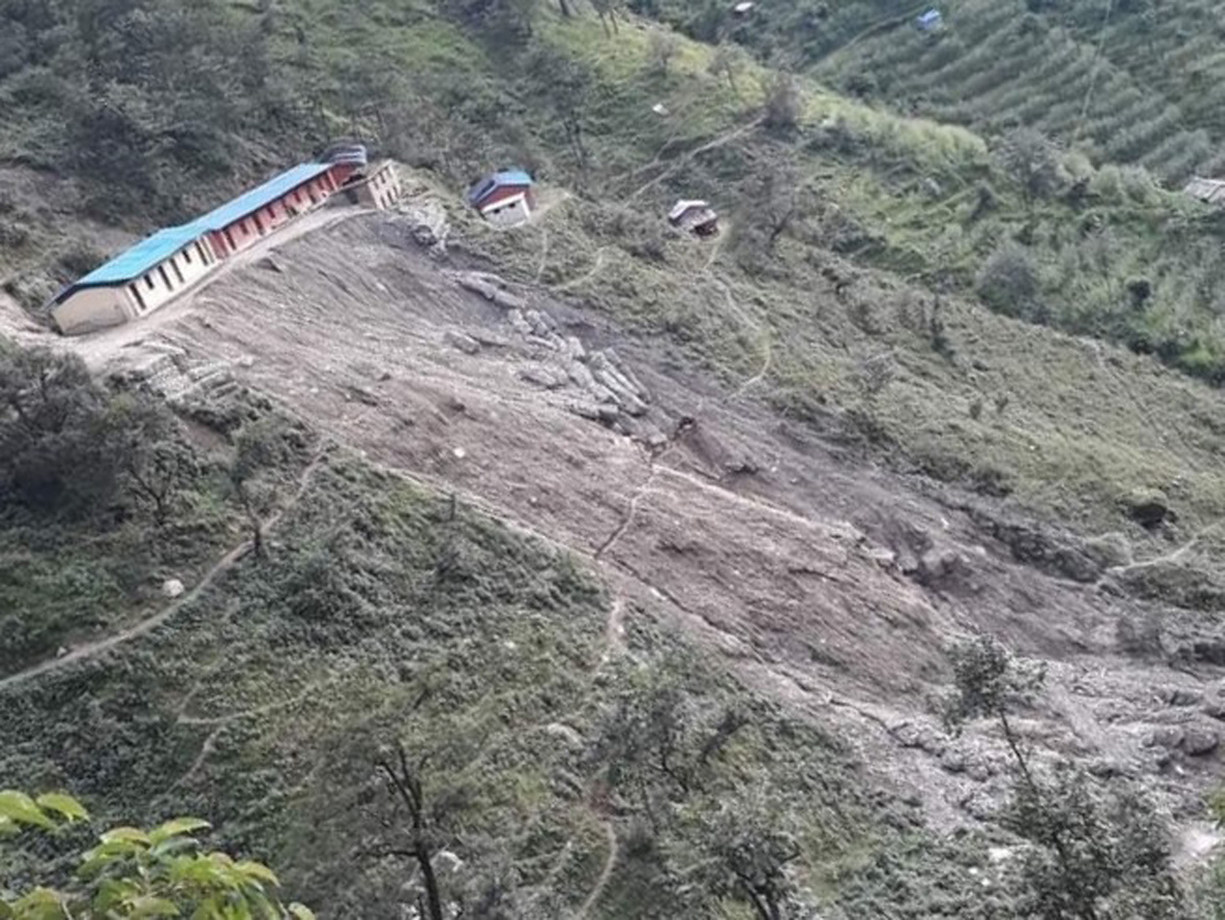 बझाङमा पहिरोले विद्यालयको भवन जोखिममा