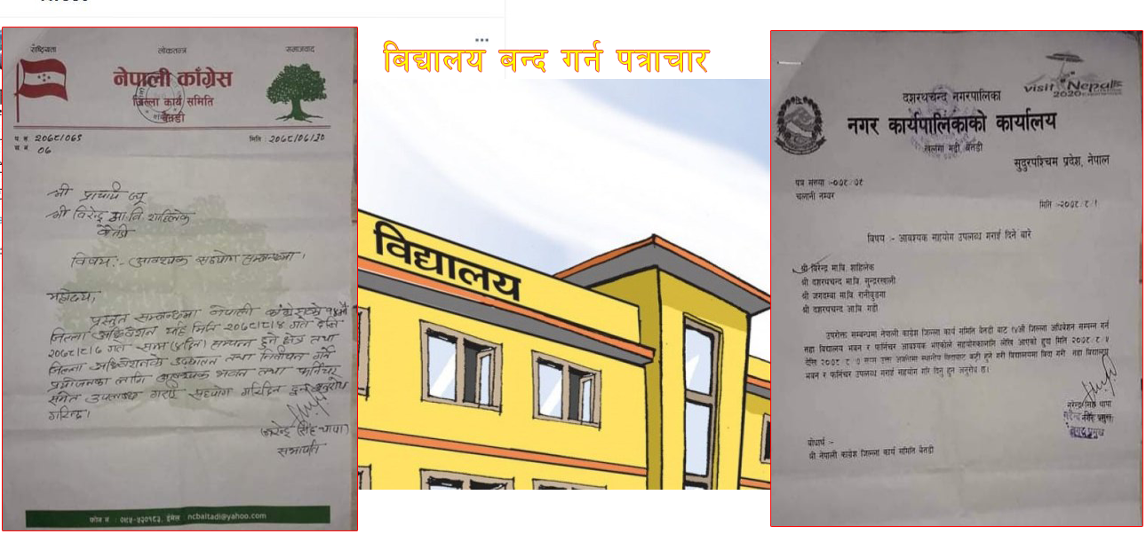 नेपाली कांग्रेस बैतडीको अधिवेशनका लागि सदरमुकामका चार विद्यालय बन्द गर्न पत्राचार