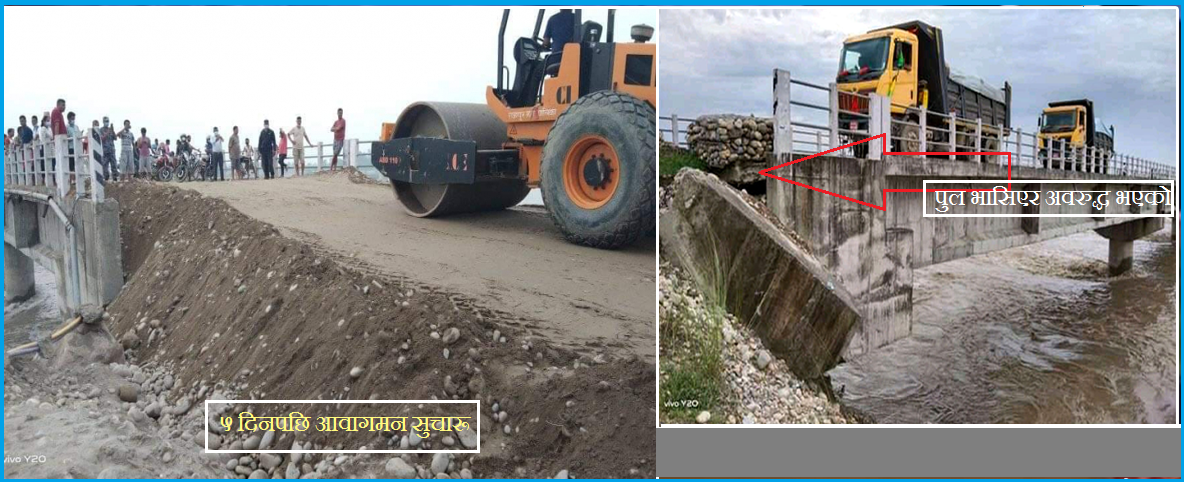 कर्णालीको पुल भासिएर अवरुद्ध भएको ५ दिनपछि आवागमन सुचारू