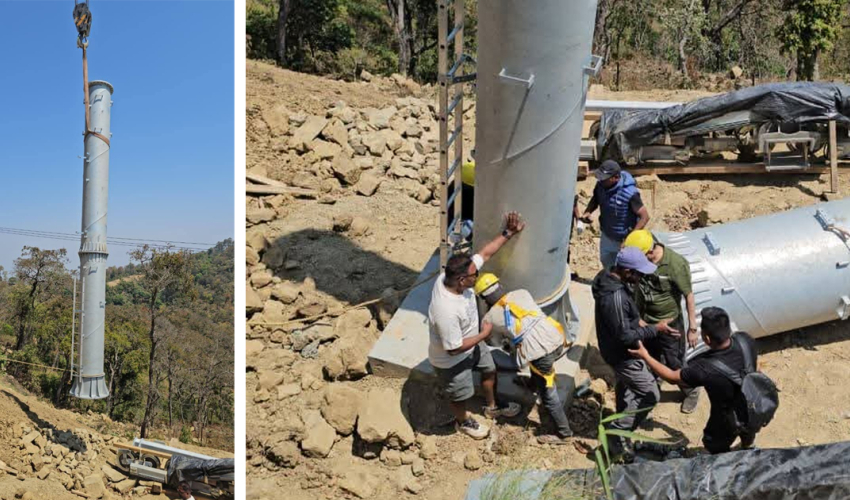 चिसापानीमा जाल्पादेवी केबलकारको पोल ठड्याउने काम सुरु